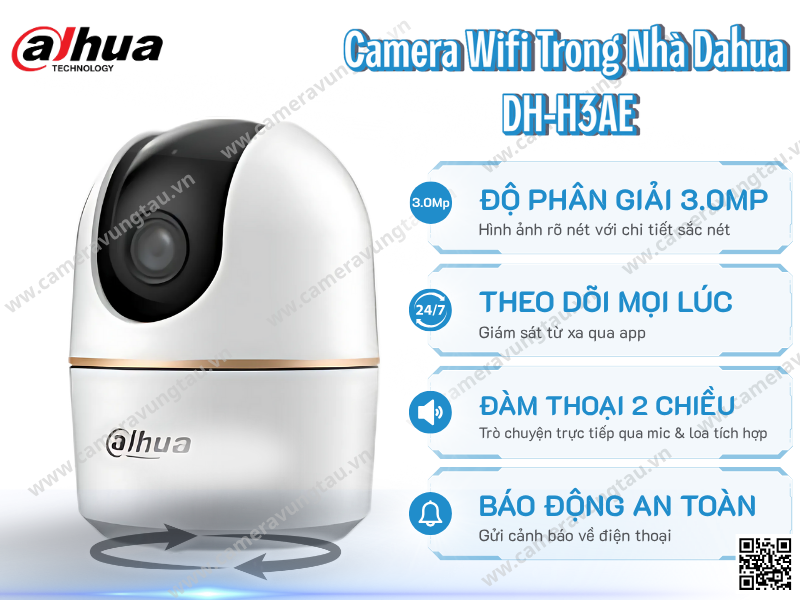 Camera WiFi Dahua DH-H3AE là giải pháp giám sát lý tưởng cho không gian trong nhà như căn hộ, văn phòng, cửa hàng nhỏ. Với độ phân giải 3MP, khả năng quay quét linh hoạt và nhiều tính năng thông minh, sản phẩm giúp bạn theo dõi toàn cảnh mọi hoạt động trong thời gian thực.